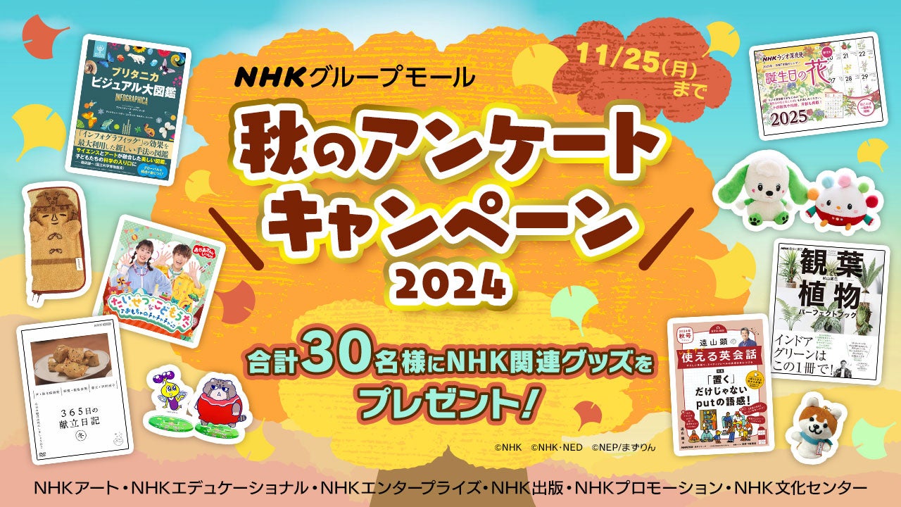 NHKグループモールでは、10月28日(月)から11月25日(月)まで、NHKグループ各社と連携して「秋のアンケートキャンペーン2024」を開催します。