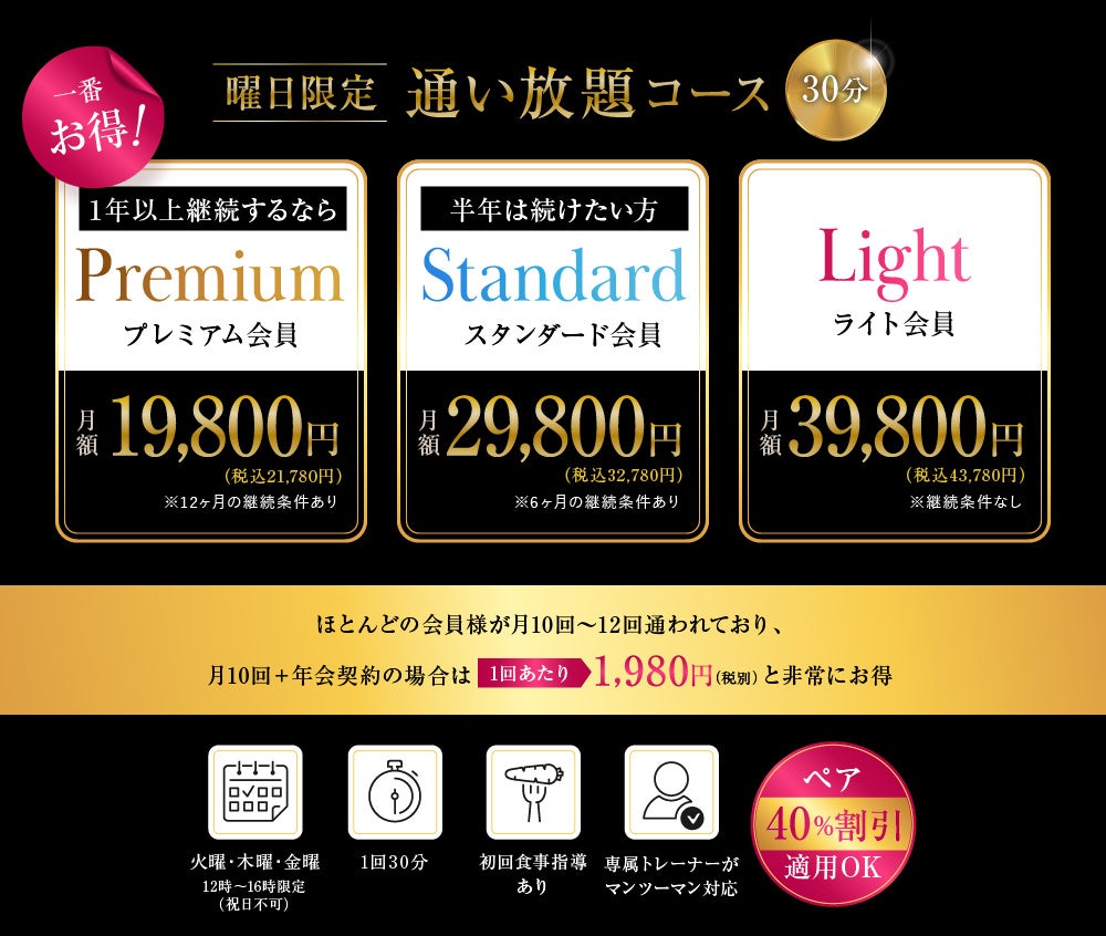 ※福岡・熊本の全ての店舗でペア40%割引キャンペーン中(VIP会員費用を除く)