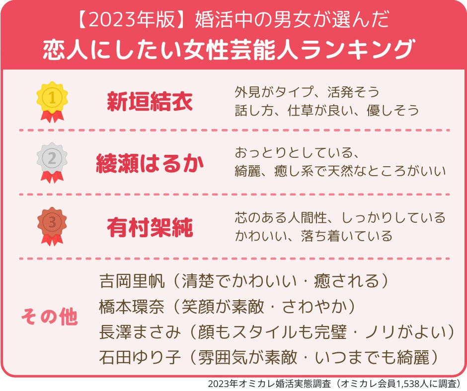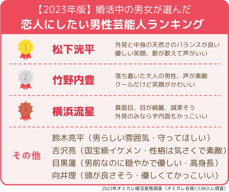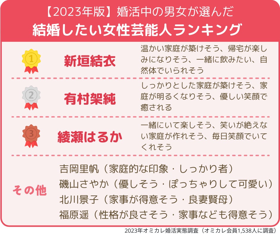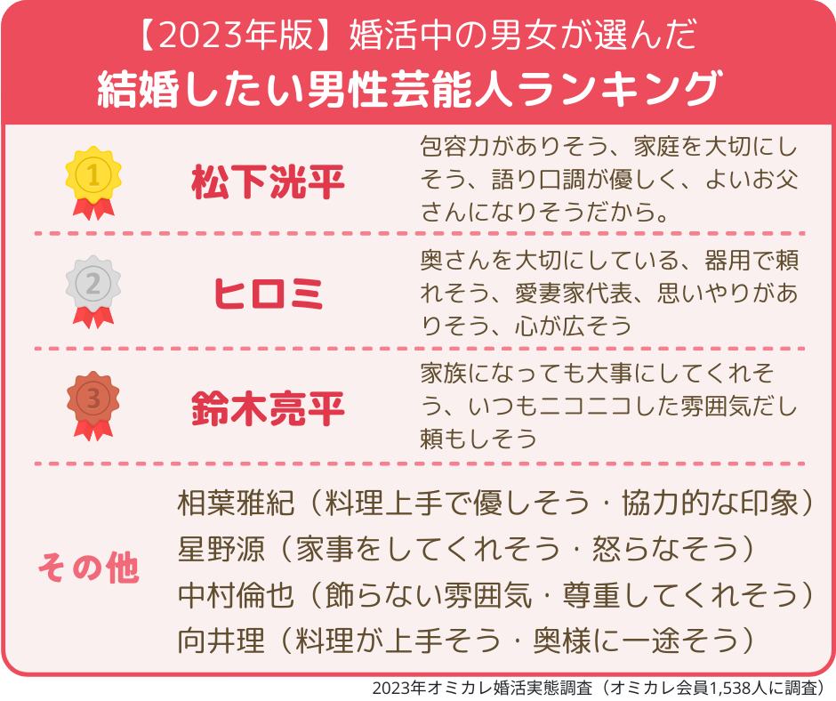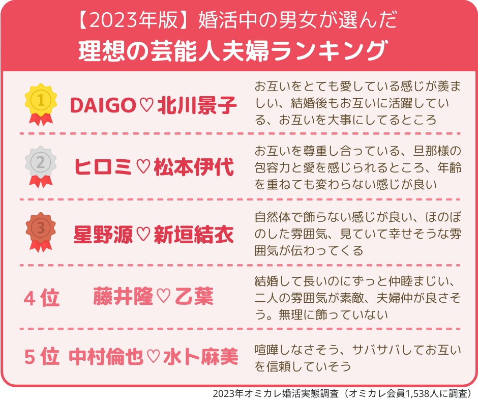 【2023年版/いい夫婦の日】「理想の芸能人夫婦」第一位はあの夫婦!~婚活女性が選んだ「結婚したい推しスポーツ選手」一位は大谷翔平!二位は、爽やかイケメンと話題のあの選手~(オミカレ婚活実態調査)