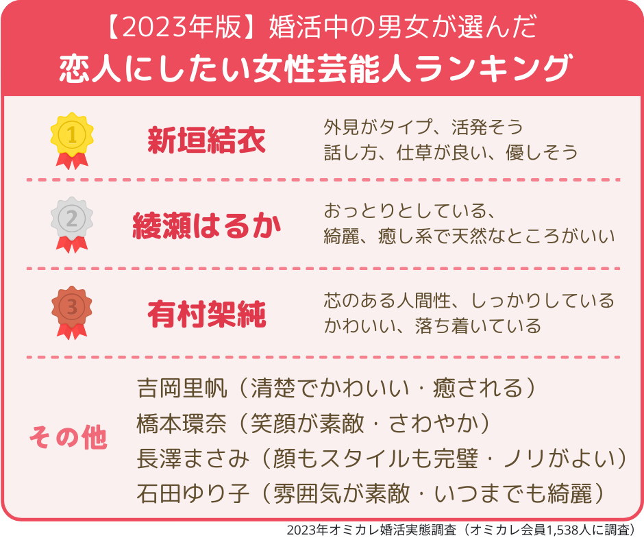【2022年版】男性が選ぶ恋人にしたい芸能人