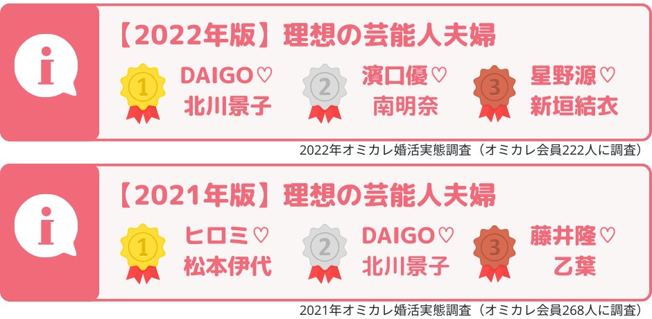「2023年度 婚活男女が選ぶ理想の夫婦」1位に輝いたのは『DAIGO♡北川景子』ご夫妻!!