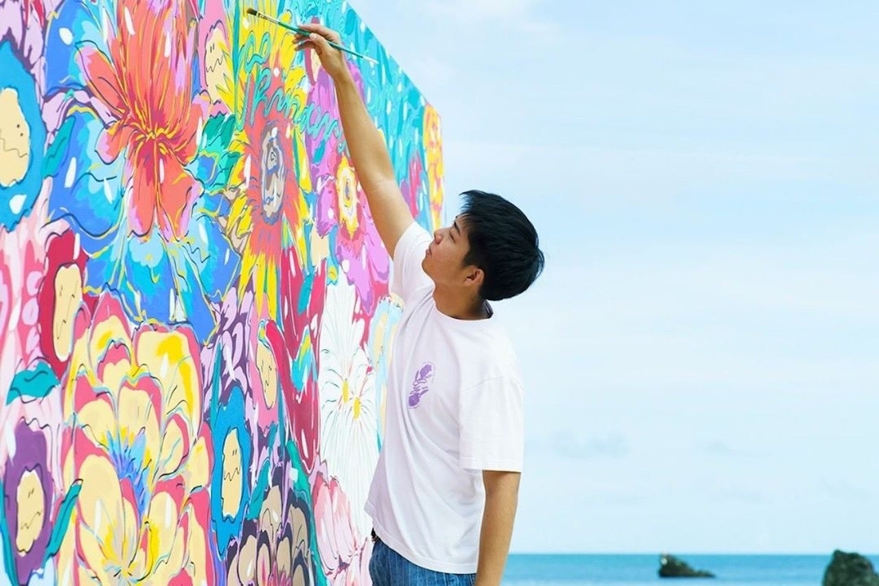 1995年生まれ。沖縄県出身。幼少の頃より絵を描くことが好きで大学入学後アート留学で ニューヨークへ渡り本格的にアートを始める。「ターナーアワード2018」未来賞受賞。沖縄を拠点に活動し、2017 年はアディダスジャパンのイベント「TOKYO RUN FIVE」来場者記念ロゴを制作を筆頭に、ユニコーン・back number・DREAMS COME TRUE 沖縄公演ウェルカムボードの担当や、