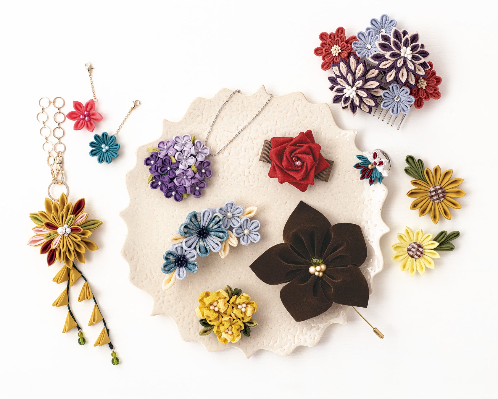 ■伝統工芸のつまみ細工でつくる、「フラワーリース」と「花々の小物」