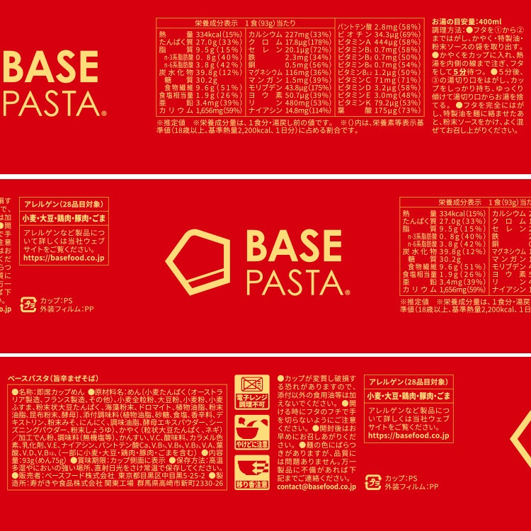 全粒粉ベースのスマートフード完全栄養食「BASE FOOD」スパイシーな旨味広がる「BASE PASTA 旨辛まぜそば」 2024年8月26日(月)新発売