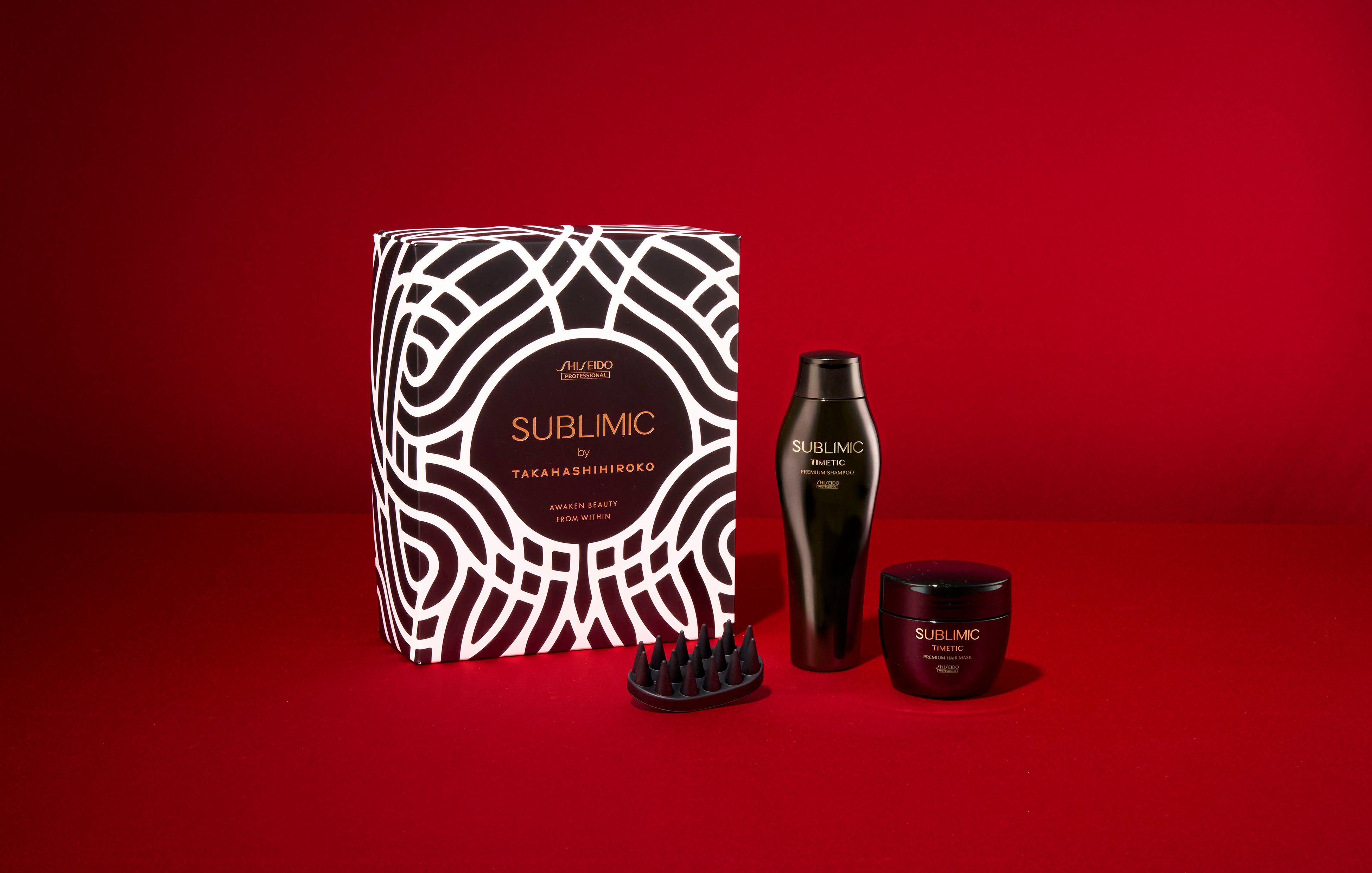 本商品は、日本人アーティスト・高橋理子氏とのコラボレーションによるプレミアムデザインボックスを採用。頭皮と髪を同時にケアできるシャンプー・ヘアマスクに加え、日々のケアを格上げするオリジナルスカルプブラシをセットにした限定ギフトセットです。