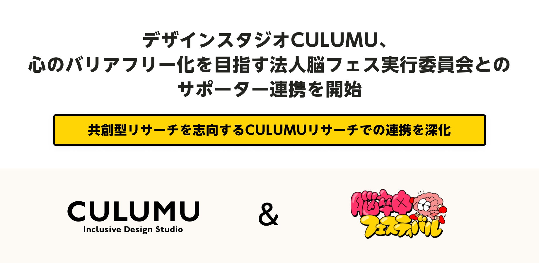 デザインスタジオCULUMU、心のバリアフリー化を目指す一般社団法人脳フェス実行委員会とのサポーター連携を開始