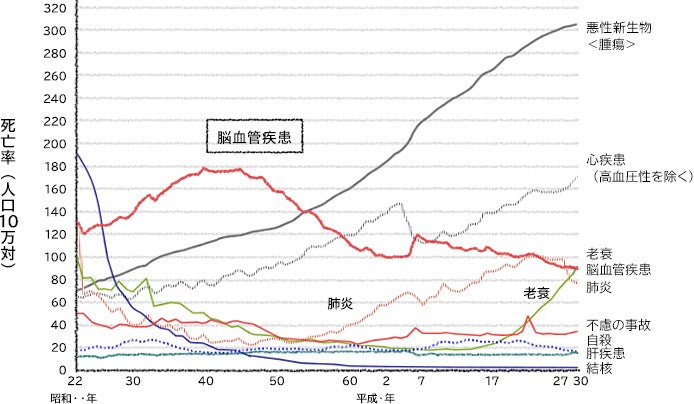 脳卒中は、かつて日本人の死因の1位を占めていましたが、近年死亡率は減少し、4位となっています(1位は癌、2位は心臓病、3位は老衰)。