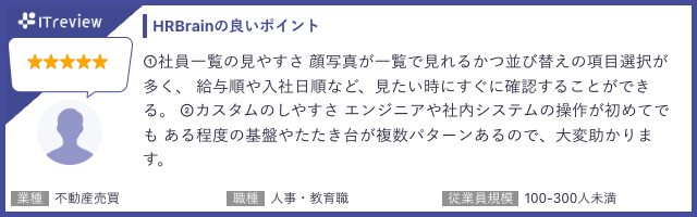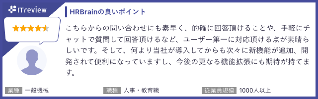HRBrainをご利用いただいているお客様から頂戴したレビューの一部を紹介します。
