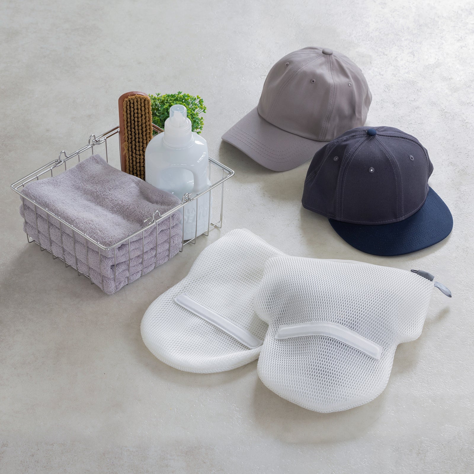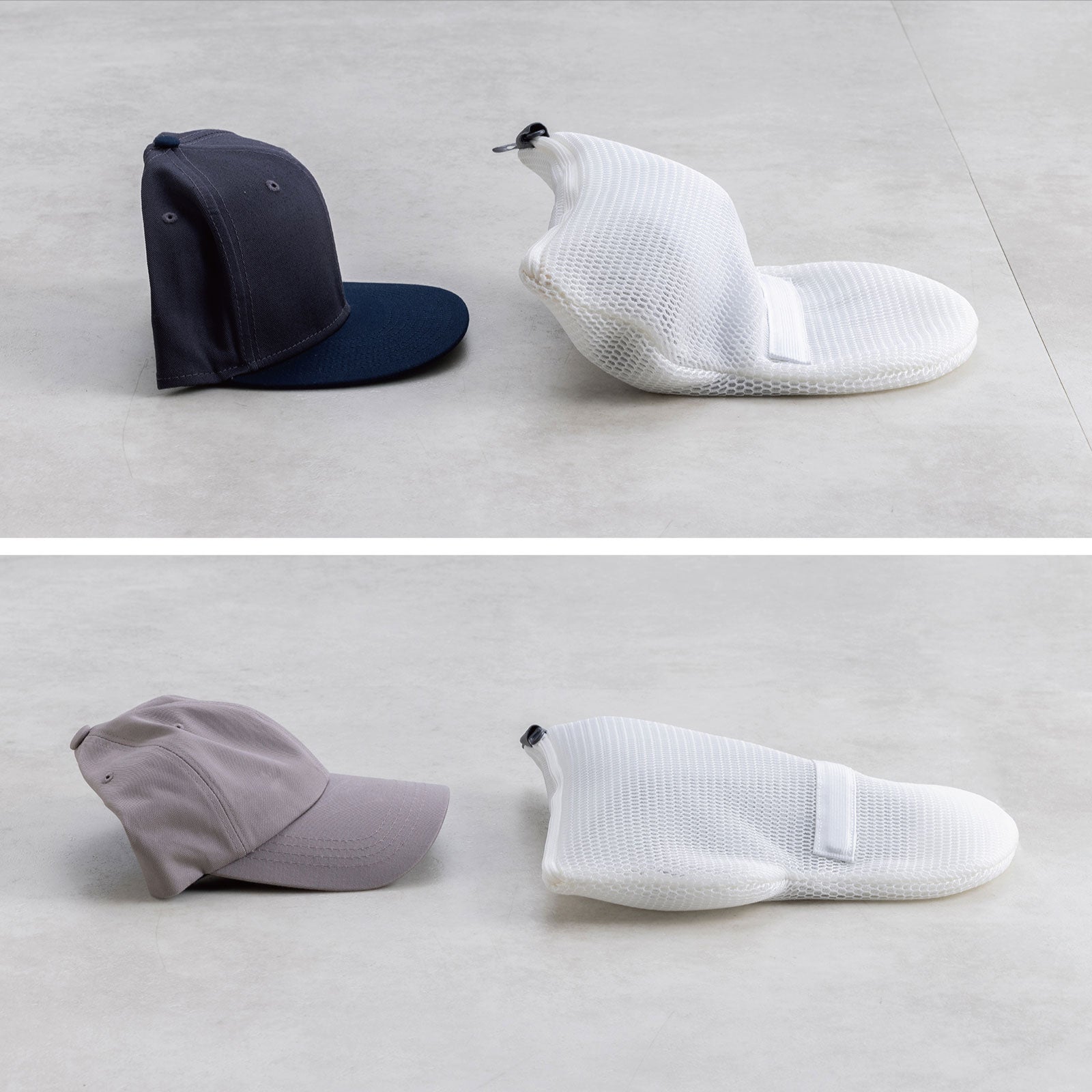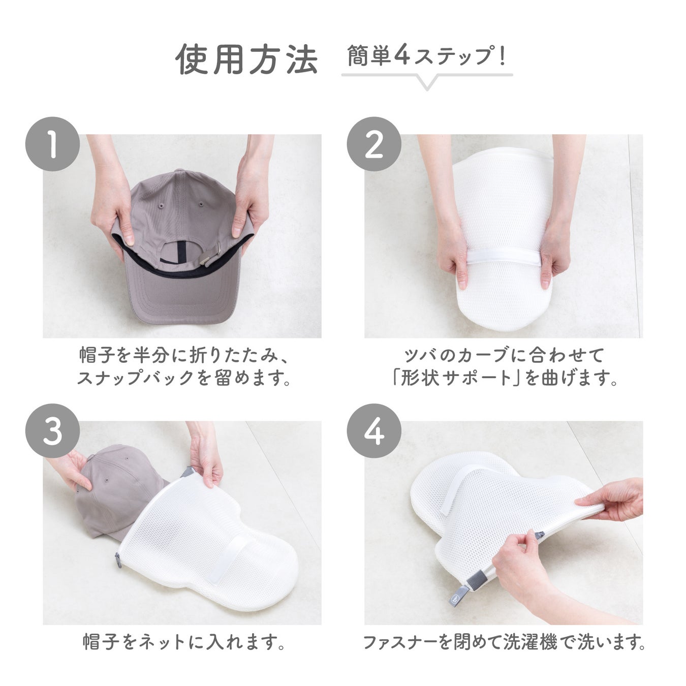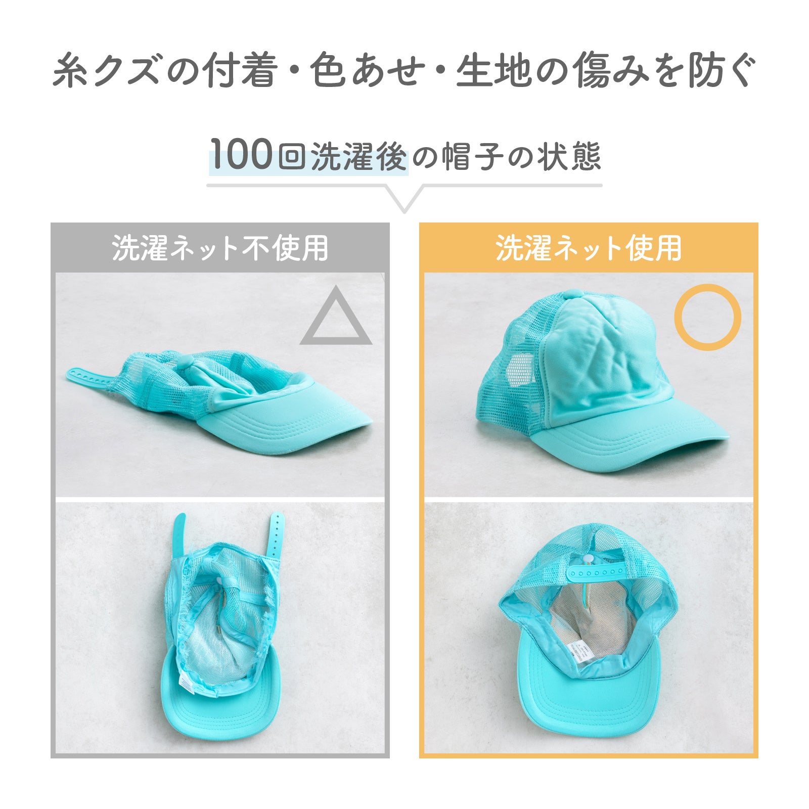 ツバの型くずれなく洗濯機で丸洗いできる「形状サポート」付き洗濯ネット