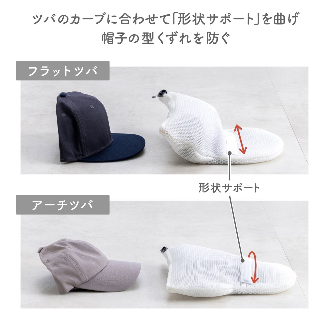 1. 「形状サポート」が帽子の型くずれを防ぐ