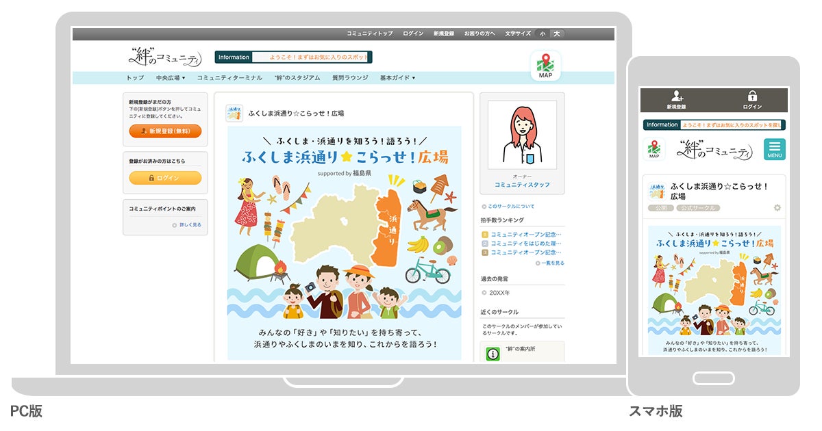 「ふくしま浜通り★こらっせ!広場」が開設された「“絆”のコミュニティ」は2020年1月にオープンした、クオンが運営するオンライン上のファンコミュニティプラットフォームです。60以上の企業・自治体と200万人を超える生活者が集い、“絆”をテーマにした交流や、参画企業・団体のコラボレーション企画、双方向コミュニケーションから生まれる生活者の声をもとにした価値共創のイベントなどを実施しています。https://www.beach.jp/community/KIZUNA/