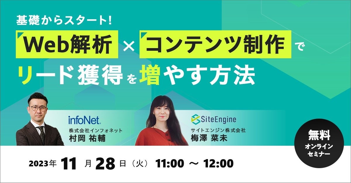 サイトエンジン株式会社 11月28日に株式会社インフォネットとの共催オンラインセミナー “ 基礎からスタート!Web解析×コンテンツ制作でリード獲得を増やす方法” を開催