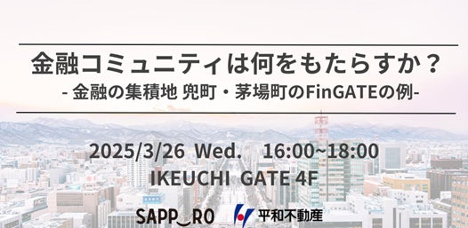 平和不動産株式会社(本社:東京都中央区、代表執行役社長:土本 清幸、以下「当社」)は、2025年3月26日(水)に、札幌市との共催により「金融コミュニティは何をもたらすか?-金融の集積地 兜町・茅場町のFinGATEの例-」と題したセミナーを札幌市内で開催します。