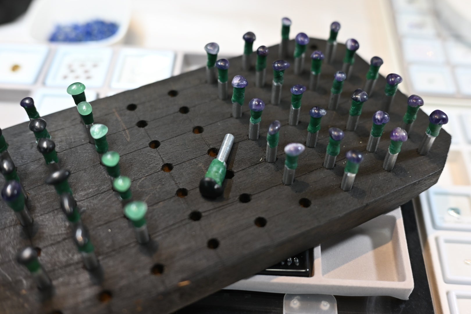 今回の研磨体験では、以前無かった原石の種類に合わせて「カット」のコースも追加されました。普段皆様のお手元に存在するルースやジュエリーが、どの様な工程を経て輝きを放っているのか、実際にご自身の手で体感していただけます。