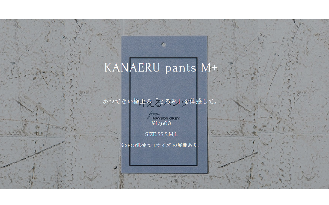 MAYSON GREY(メイソングレイ)は、「DAILY・BASIC・BALANCE」をキーワードに“楽にきれいが叶う”大人の洗練された心地よいスタイルを提案しています。