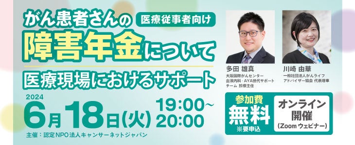 ・ オンラインセミナー「医療従事者向け がん患者さんの障害年金について~医療現場におけるサポート」開催(2024年6月18日(火))