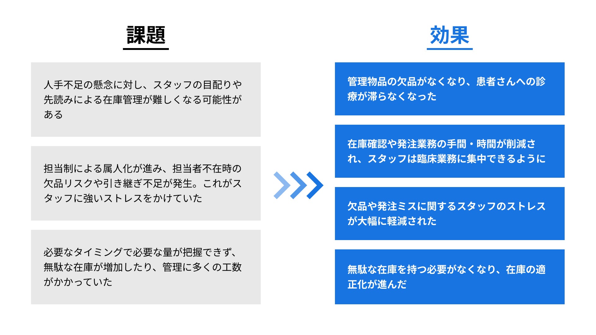365日診療の現場でスタッフを悩ませていた在庫管理・発注を自動化し、引き継ぎの負担やストレスから解放!