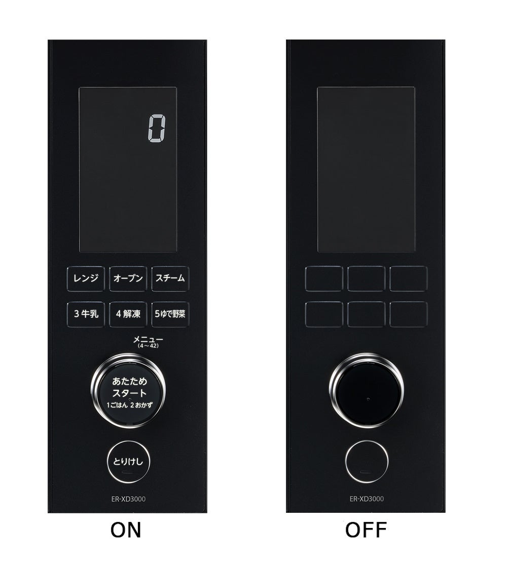 さらに、ER-XD5000、ER-XD3000では、本体デザインを一新、本体扉横に表示・操作パネルを配置させました。操作性の向上と共に、使用時にのみ表示パネルの文字が発光、使用しない時はブラックアウトします。様々な空間とも調和するシンプルでノイズレスな外観等、細部にまでこだわりました。