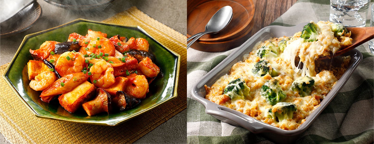 新製品では、下味冷凍した肉や魚を凍ったまま並べるだけで、おいしく焼き上げる「冷凍から焼き物」調理を新搭載。オーブンの高火力によって、解凍の手間を省き、表面の余分な水分を飛ばしながら、パリッと焼き上げます。また、冷凍・レトルト食品等のストック食材を活用した、簡単で手軽な「簡単調理」と「冷凍野菜メニュー」も追加しました。
