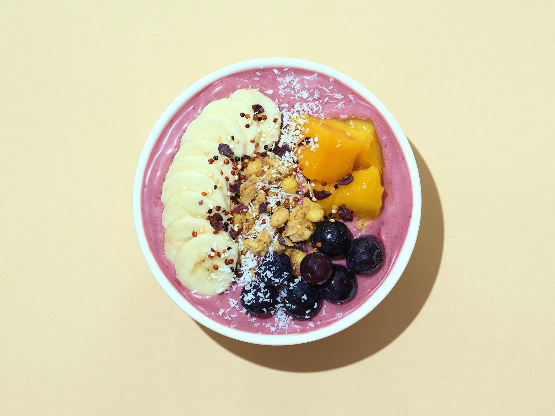 「アサイーボックス」は、濃厚な味わいのアサイーコールドクリームに、バナナ、マンゴー、ブルーベリー、グラノーラ、キヌア、カカオニブ、ココナッツファインなどをトッピング。ひんやりとしたもっちり食感が長時間楽しめるアサイーコールドクリームを開発し、テイクアウトボックスに入れて提供するので持ち運びが可能で、どこでも手軽にお召し上がりいただけます。