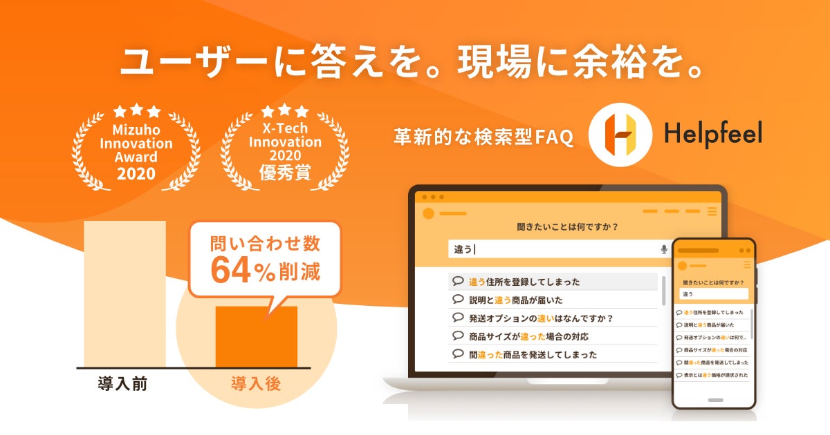 「Helpfeel」は、検索性に特化し、問題がすぐに解決するFAQサイトを簡単に構築できるシステム。お客様が自力で問題を解決するのを手助けするだけでなく、カスタマーサポート担当者やコールセンターの負担を軽減します。