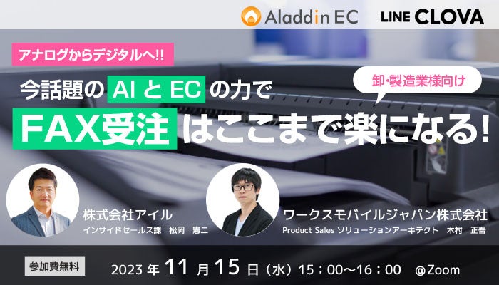 アイル、「アナログからデジタルへ~今話題のAIとECの力でFAX受注はここまで楽になる!~」セミナーをワークスモバイルジャパンと共催