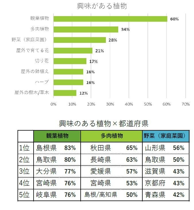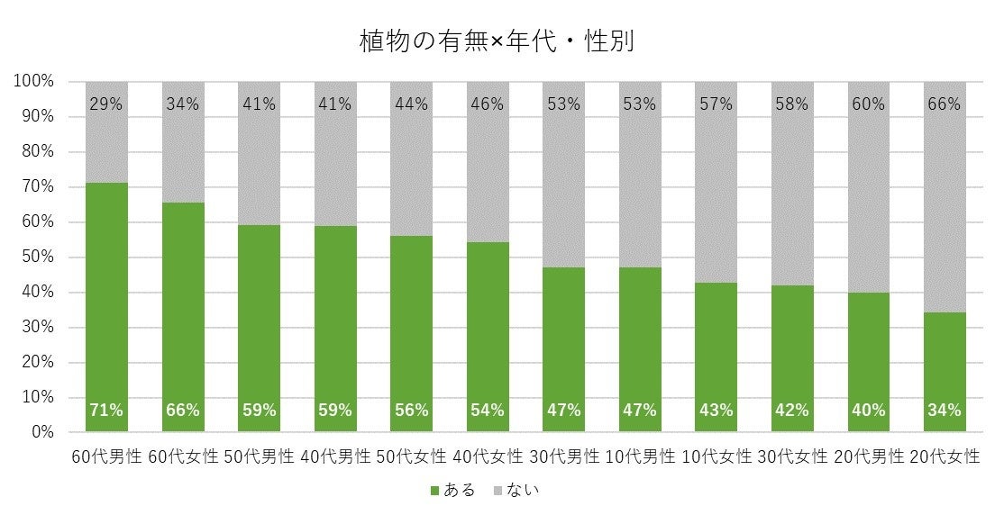 - 2人に1人が自宅に植物があり、60代男女の所有が最多