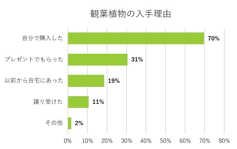 - 観葉植物は自分で購入が最多。理由は「好き/趣味だから」