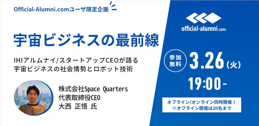 Official-Alumni.comユーザー限定:3/26(火)セミナー開催!『 宇宙ビジネスの最前線 』