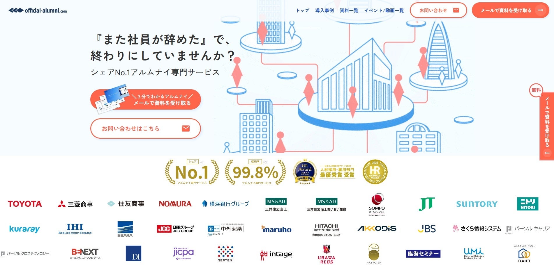 ハッカズークでは、企業とアルムナイとの新しい関係を実現し、退職による損失を無くすために、アルムナイ専用システム『Official-Alumni.com』及びコンサルティングの提供を通じて、アルムナイネットワーク構築の支援を行っています。