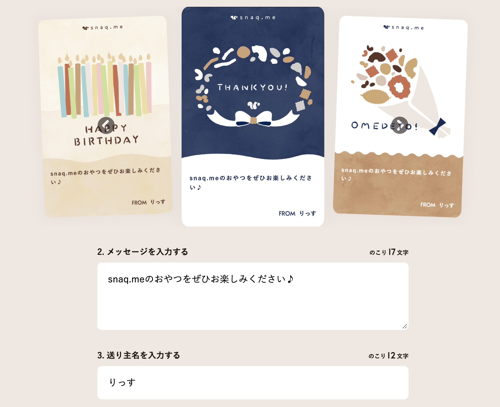 贈り手の方はメッセージをデジタルギフトカードにのせて伝えることができます。