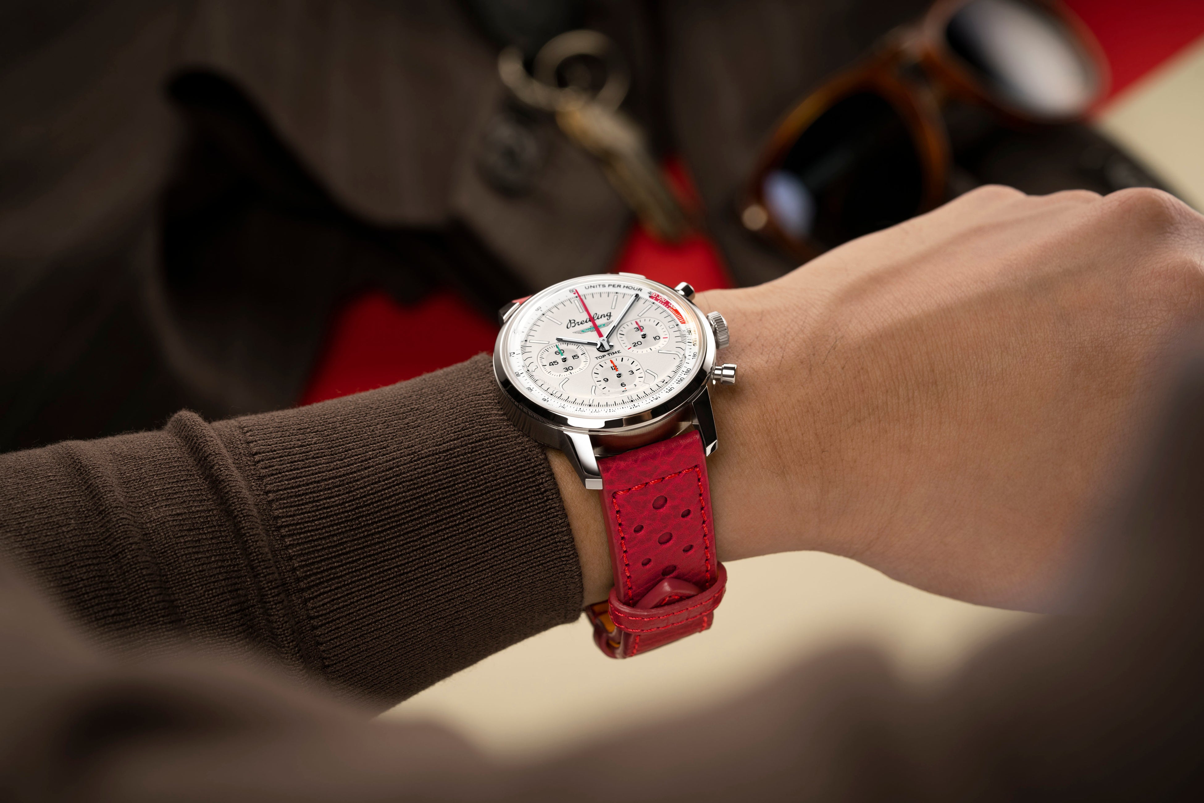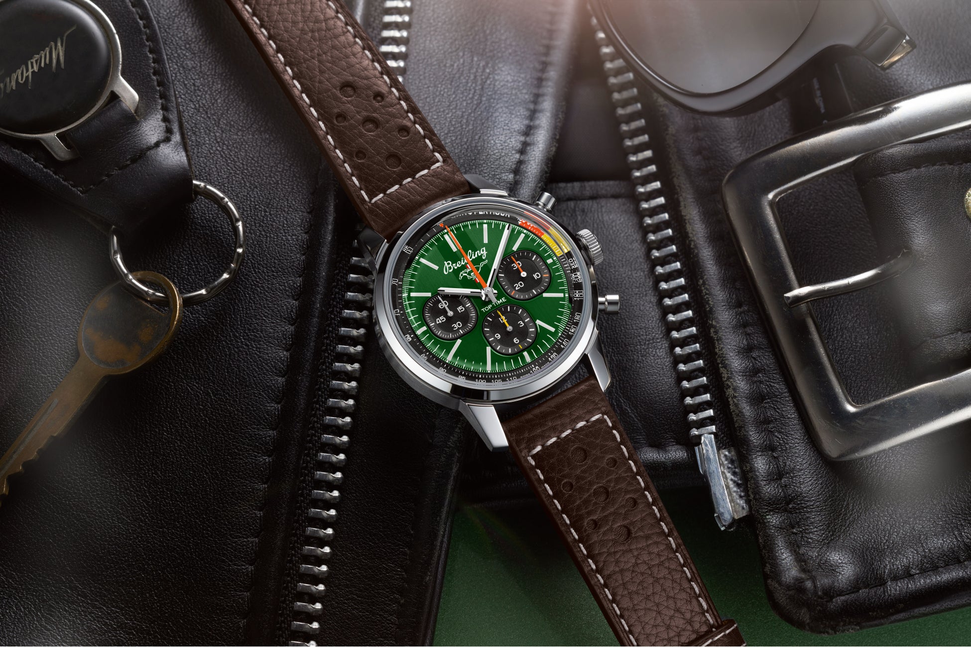 カラフルな文字盤とストラップが目を引くのは、新しいトップタイムです。カプセル・コレクションとして2020年にアメリカ車の文化を代表するシボレー コルベット、フォード マスタング、シェルビー コブラからインスピレーションを得て登場。瞬く間に完売しました。今回、偉大なアメリカンスポーツカーのラインアップに新たなメンバーが仲間入りし、ブライトリングのマニュファクチュール・キャリバー01が投入することでさらに強力なコア・コレクションとなりました。