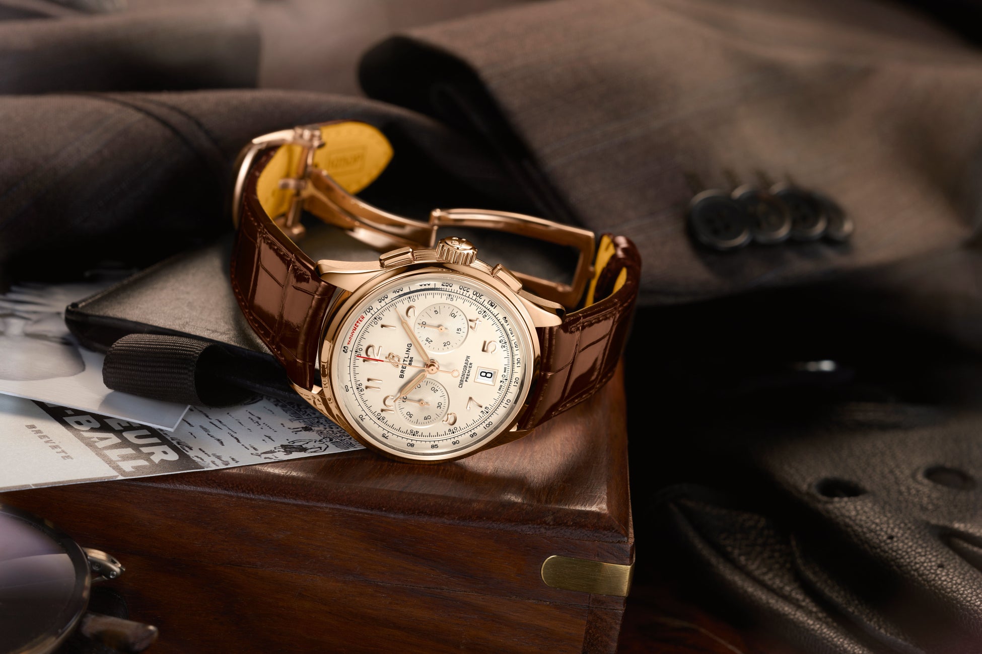 1943年までに、ウィリー・ブライトリングは戦時の機能的なニーズを満たす航空機用計 器や腕に装備する計器のメーカーとしてその名を築きました。しかしこのブライトリング 創業家の3代目はまた、実用性一辺倒から自由な楽観主義へと変わるだろう戦後を夢見ていました。そんな将来を念頭に置きながら、彼はエレガントなクロノグラフのシリーズをデザインし、それらに最高の素材、最高の仕上げ、最高のキャリバーを採用しまし た。彼はこの新しいシリーズを「プレミエ」と名付けました。
