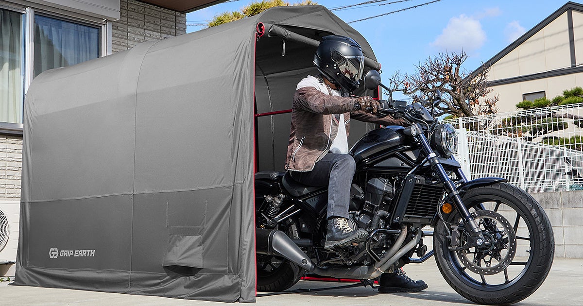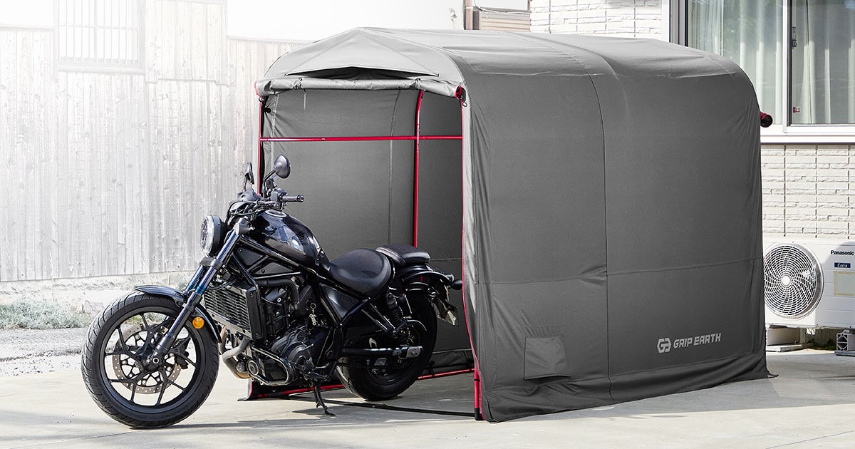 大切なバイクを長く良好な状態で維持するためには、雨風による傷やサビ、埃や紫外線によるパーツや塗装ダメージを防ぐことが重要です。また、盗難やイタズラ防止のためには、バイクを隠すことが対策となります。そこで活躍するのがバイクガレージです。シャッター式などのガレージは設置に時間や費用がかかりますが、簡易型であれば設置が簡単かつ移動も容易です。