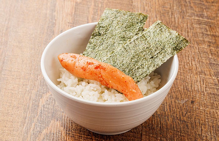 博多といえば明太子。⼩ぶりで丁度良いサイズの明太⼦が丸っと⼀本乗った贅沢な丼です。