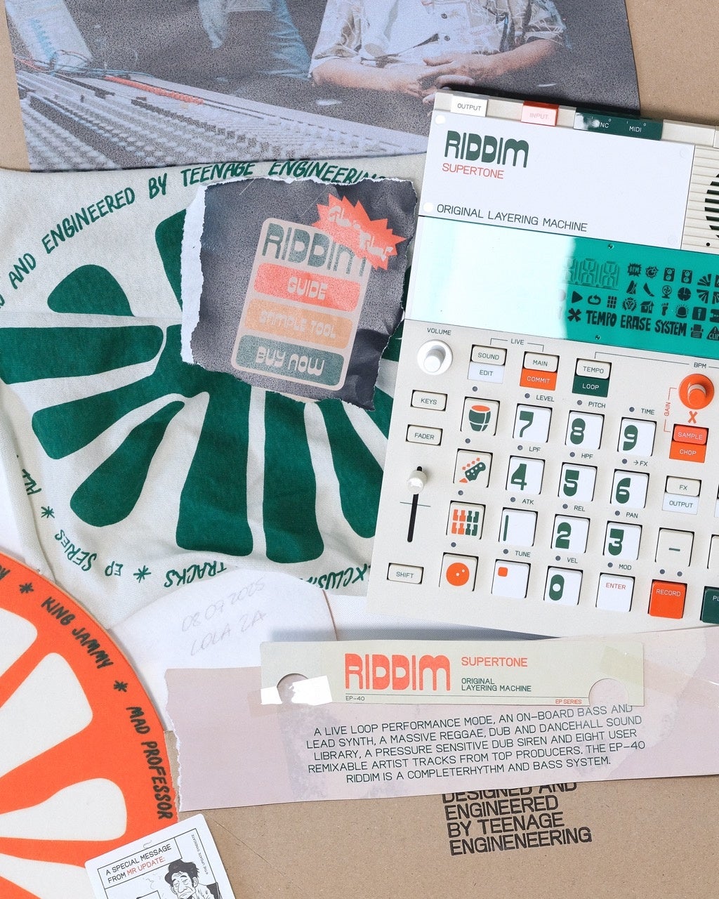 遊び心をくすぐる製品を多数リリースするスウェーデンのteenage engineering社。同社が送るEPシリーズ第3弾「EP-40 riddim supertone」は、レゲエ/ダブのグルーブを現代の制作環境に呼び戻すループレイヤー型ビートマシン。初回限定版「EP-40 + EP-2350 Launch Kit」では、ハンドヘルド・マイク「EP-2350 ting fx」が同梱され、サウンドメイクからライブパフォーマンスまで、レゲエカルチャーの根幹を手のひらで操る新たな制作体験を提供します。