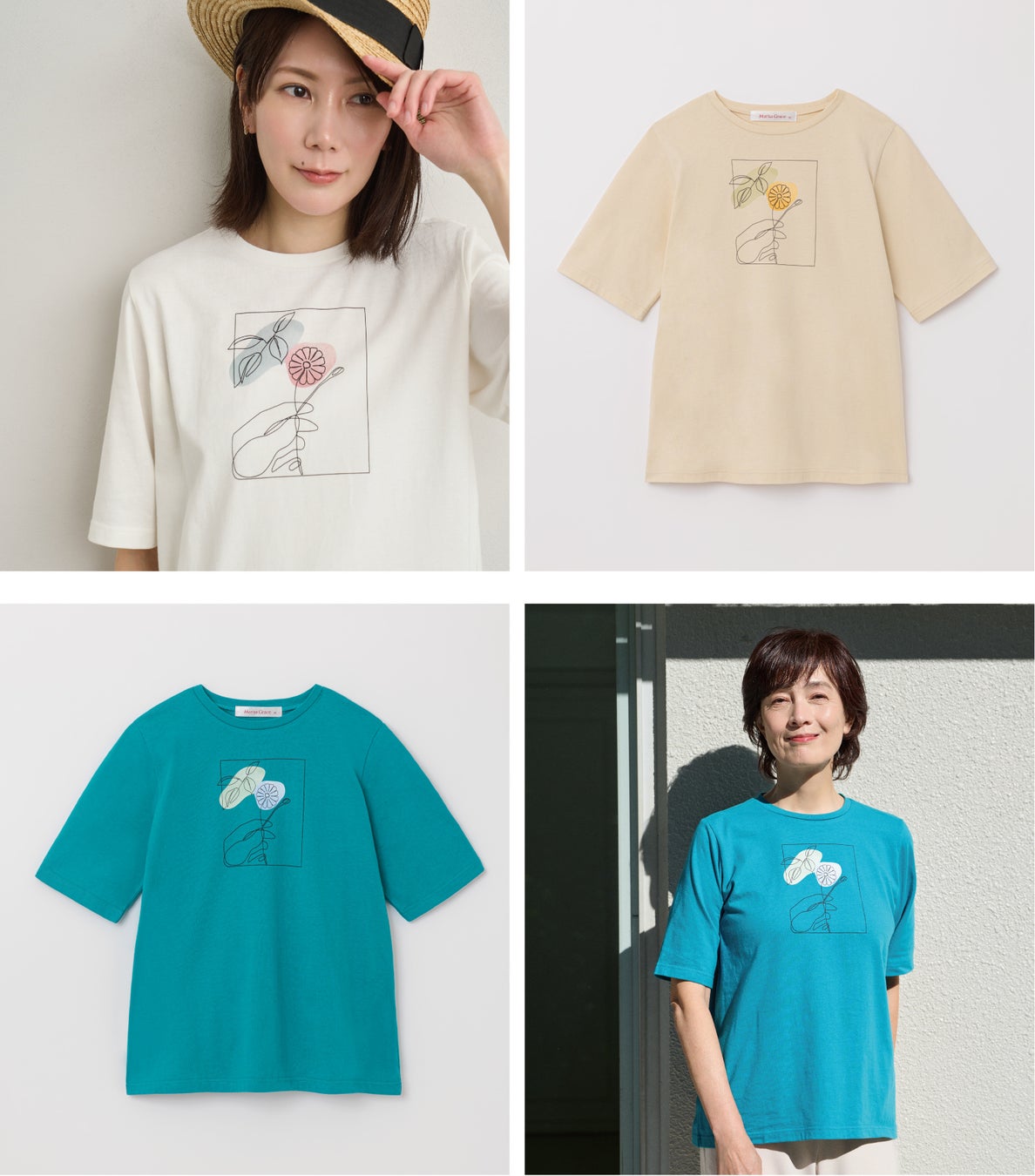 2名の方をお迎えして、カジュアルなアイテムながら日常に馴染む、Marisa Graceらしさを取り入れた柔らかで上品なイメージを描き起こしていただきました。