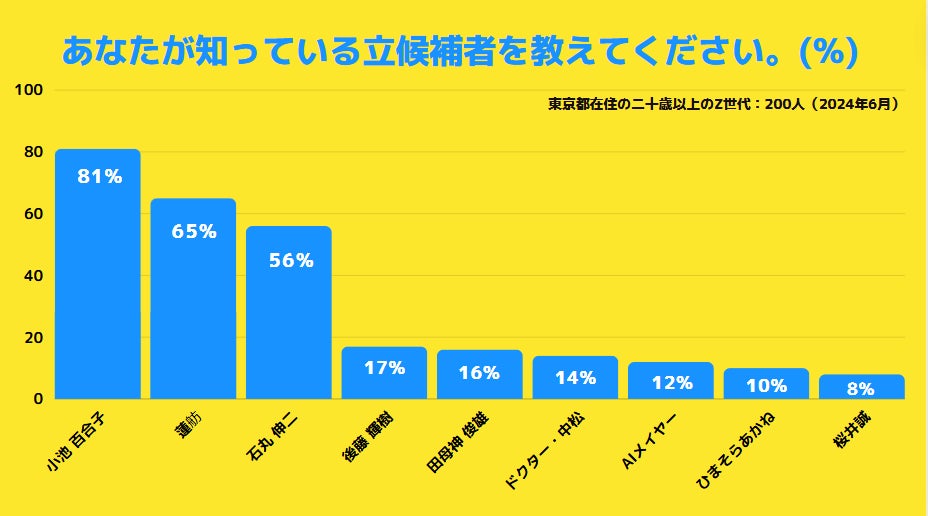 調査の結果、小池氏、蓮舫氏、石丸伸二氏が大学生に広く認知されていることがわかりました。