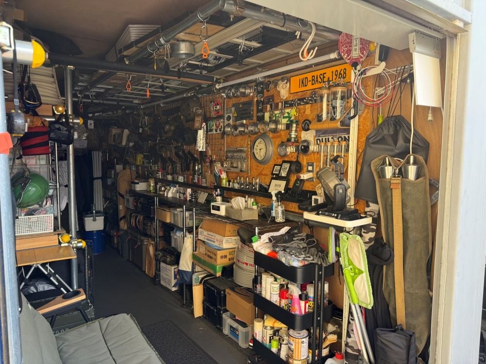 MAGNUM様:壁や天井まで空間を有効活用しているだけでなく、まるで大人の秘密基地のような、「見せる収納」となっている点が素晴らしいです。毎回トランクルームに来るのが楽しみになるような空間です。
