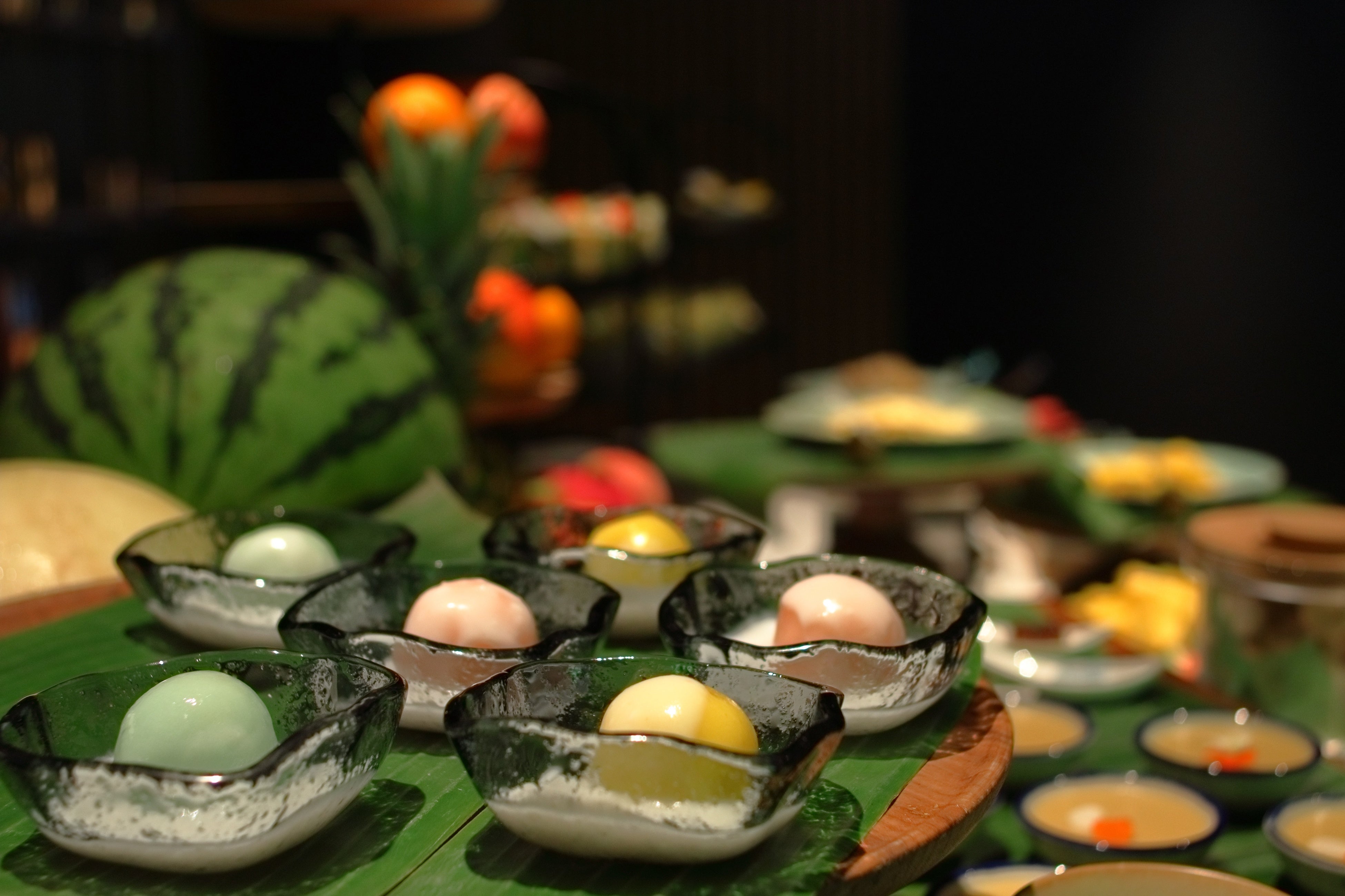 タイ国商務省認定「タイ・セレクト」を獲得した本格タイレストラン「Kati」では、ソンクラーン祭にあわせた期間限定ランチビュッフェを提供します。タイ風カレーラーメン「カオソーイ」や、タイ醤油のソースで仕上げる蒸し鯛といったスペシャリテをはじめ、タイ人シェフが手掛ける多彩な料理が並びます。今年は、祝祭の華やぎを彩るスイーツにも趣向を凝らし、マンゴスチンやランブータンなどの南国フルーツに加え、ドリアンブアローイやサゴメロンといった伝統菓子、さらにドリアンを用いたシュークリームやチーズケーキなど、Katiならではの本場の味わいをご用意します。彩り豊かな料理とスイーツとともに、ソンクラーン祭りの賑やかな雰囲気をお楽しみいただけます。