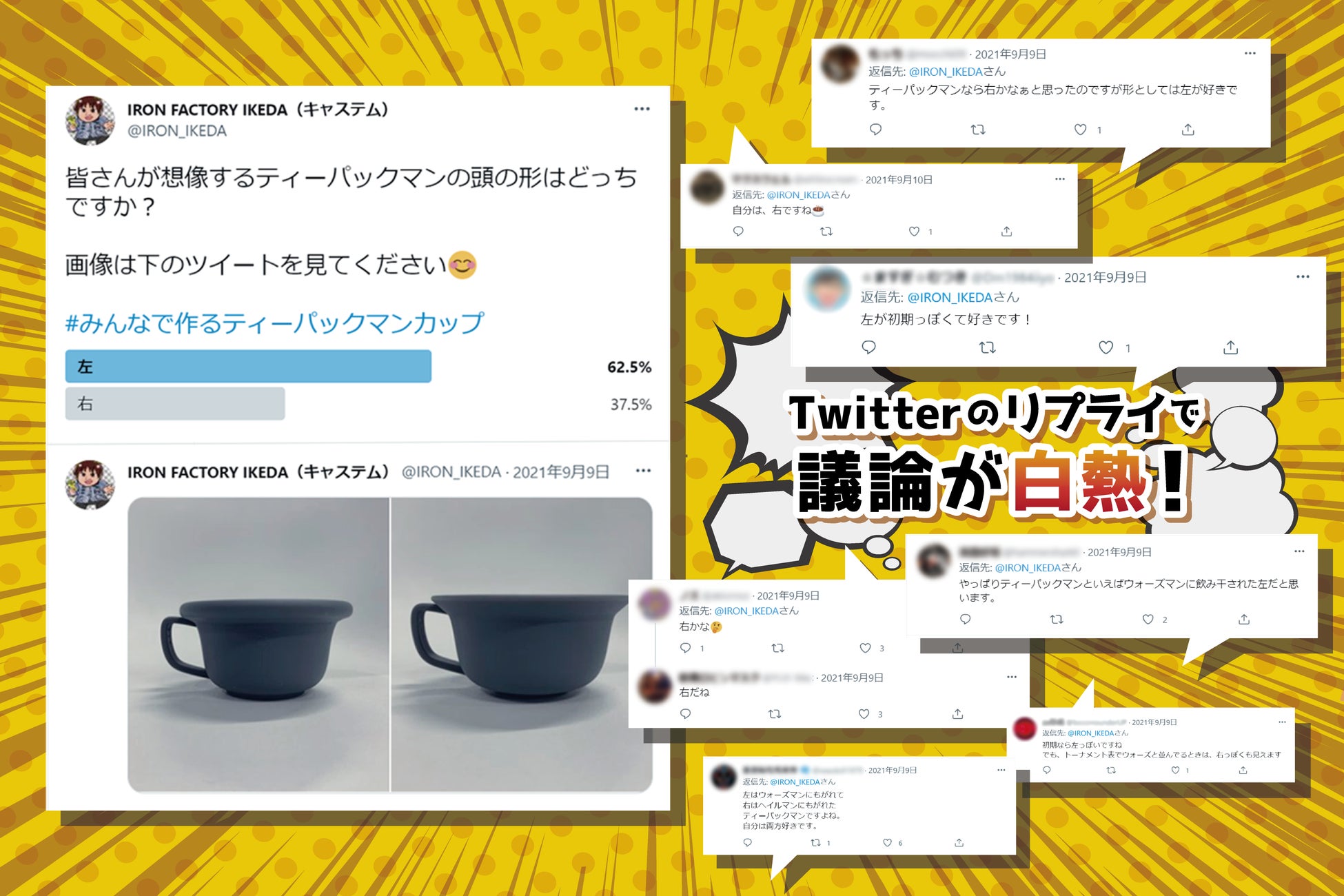 精密部品メーカーの株式会社キャステム(広島県福山市、代表取締役:戸田拓夫)は、美濃焼の本場である岐阜県多治見市の磁器メーカー株式会社丸朝製陶所(代表取締役:松原圭士郎)とタッグを組み、2種の「ティーパックマンティーカップ」を商品化致しました。キャステムが企画と原型製作を担当し、丸朝製陶所が磁器で量産化しました。