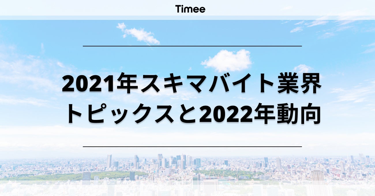 スキマバイトサービス「タイミー」を提供する株式会社タイミー(所在地:東京都豊島区、代表取締役:小川 嶺)は、「タイミー」を利用した働き手の方々や、事業者の様々なデータをもとに、2021年の“スキマバイト(スポットワーク[※補足1])業界”の振り返り及び、2022年の“スキマバイト(スポットワーク)業界”のトレンド予測を発表します。