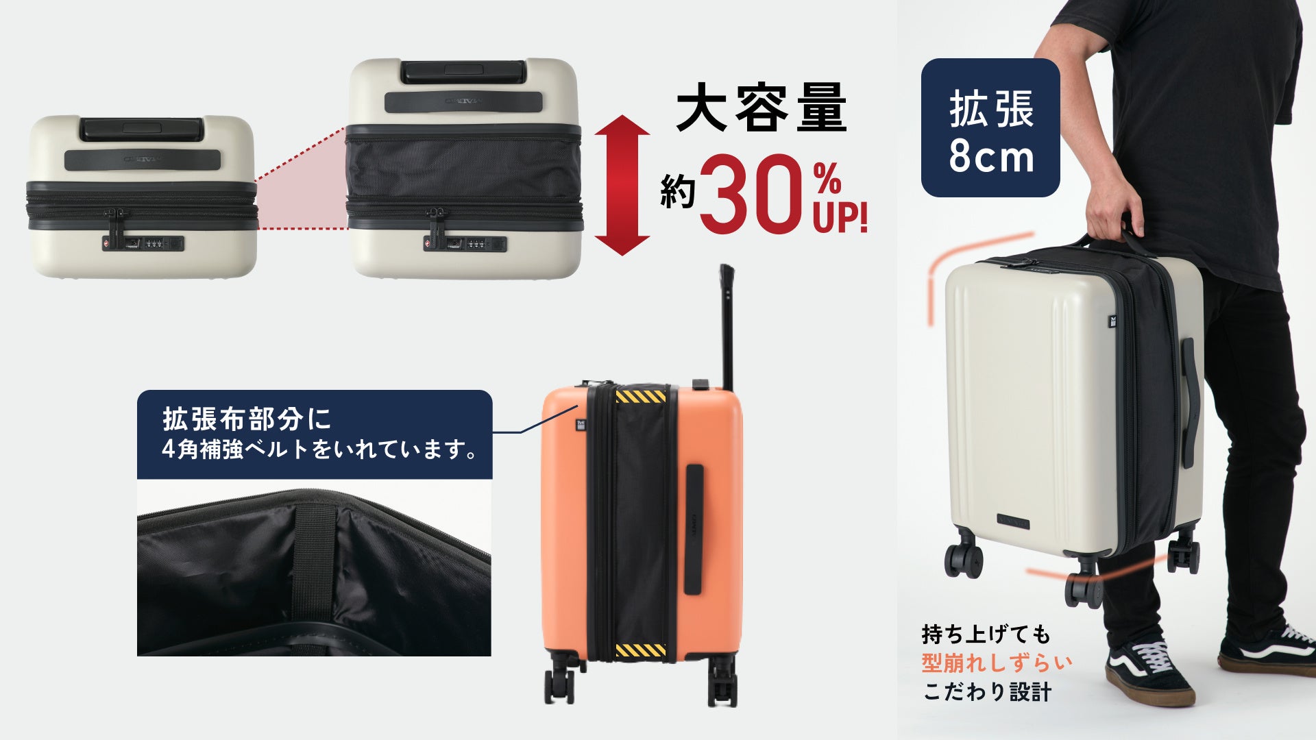 「ZIPUP」は業界最大クラスの8cm拡張に挑戦にした大容量スーツケースです。