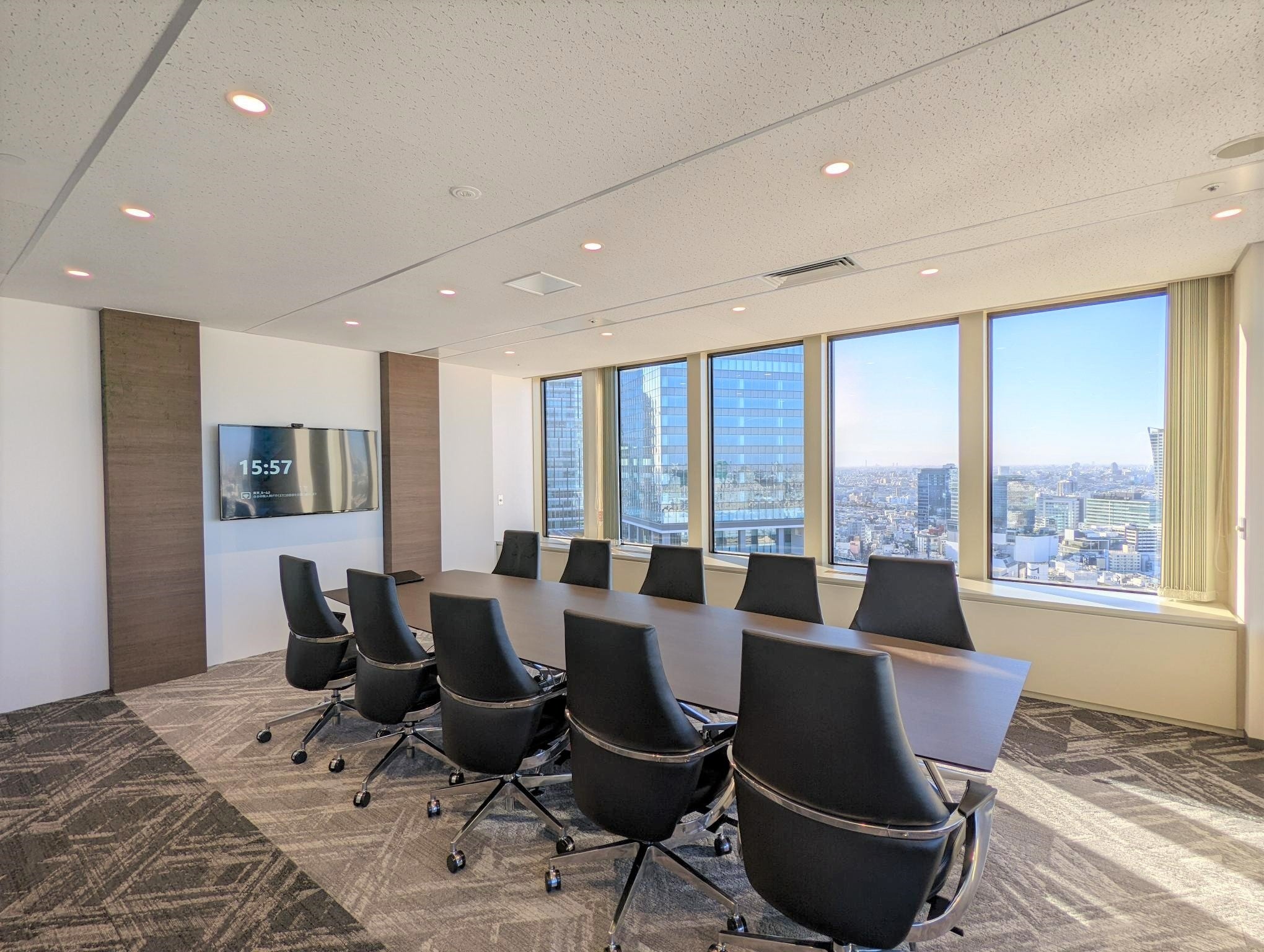 すべての部屋が窓側となっており、大きな窓からは都内の景色が一望できます。開放感のある空間で、ご来社いただくお客様にも快適な時間を過ごしていただけます。