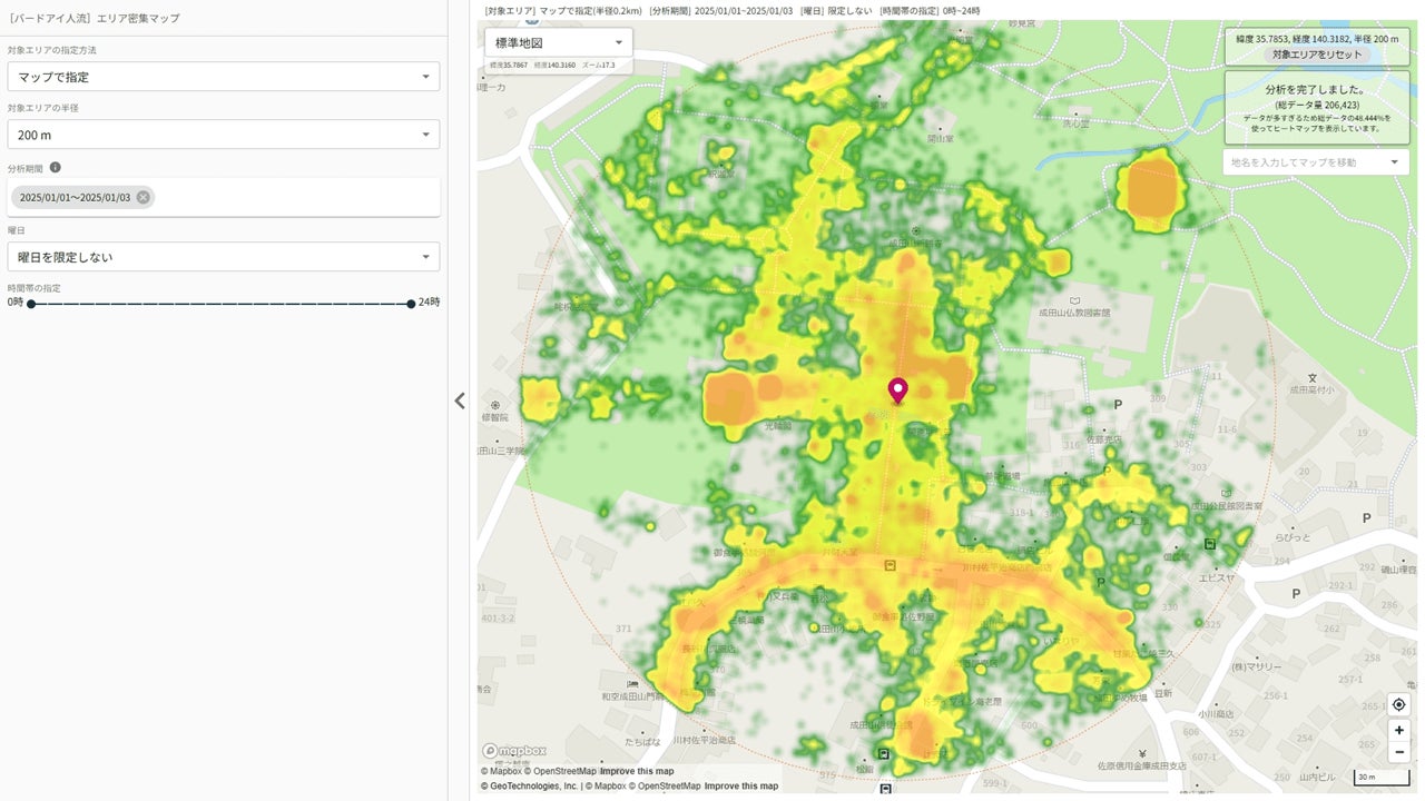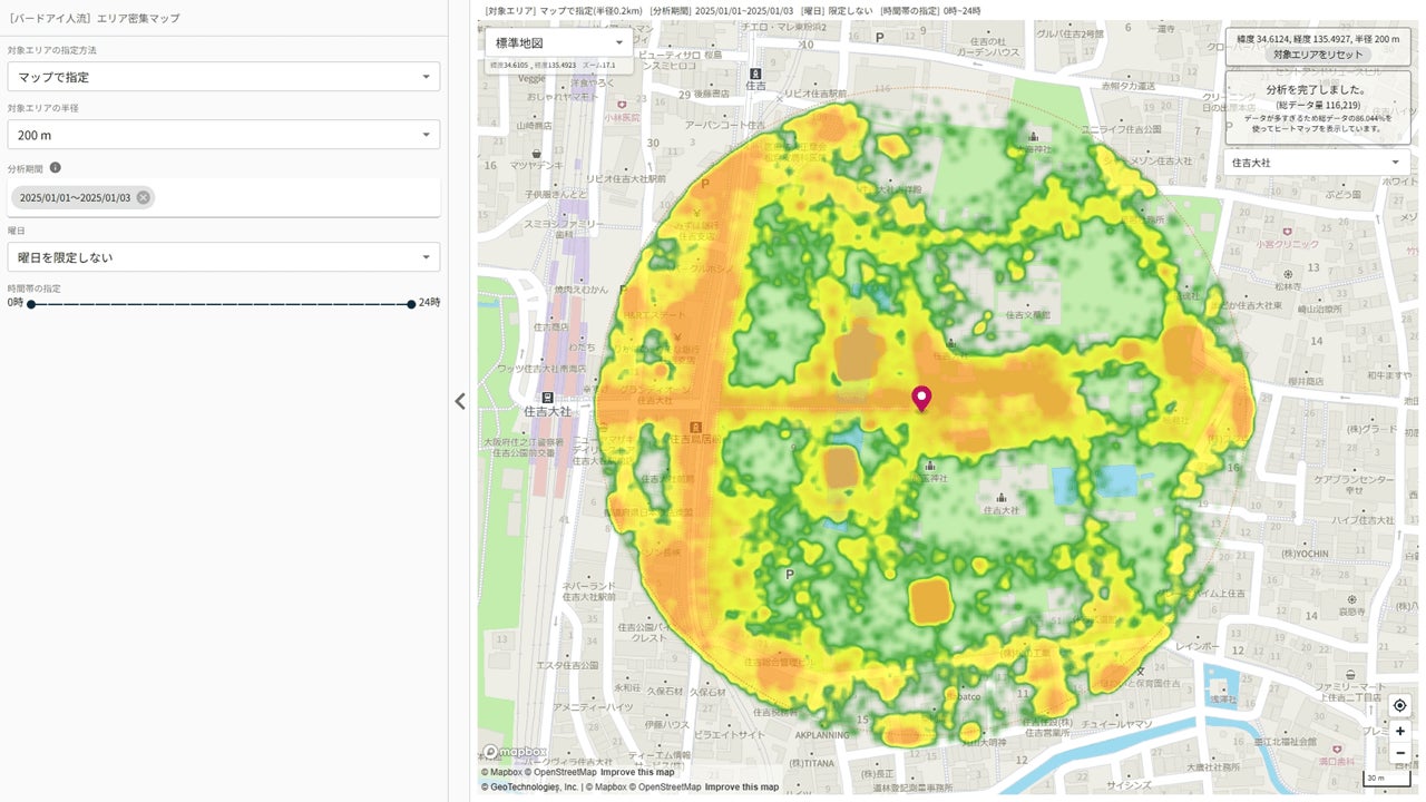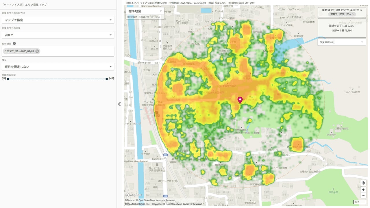〜バードアイ人流「エリア密集マップ」で元旦の主要初詣エリアの混雑状況を可視化~