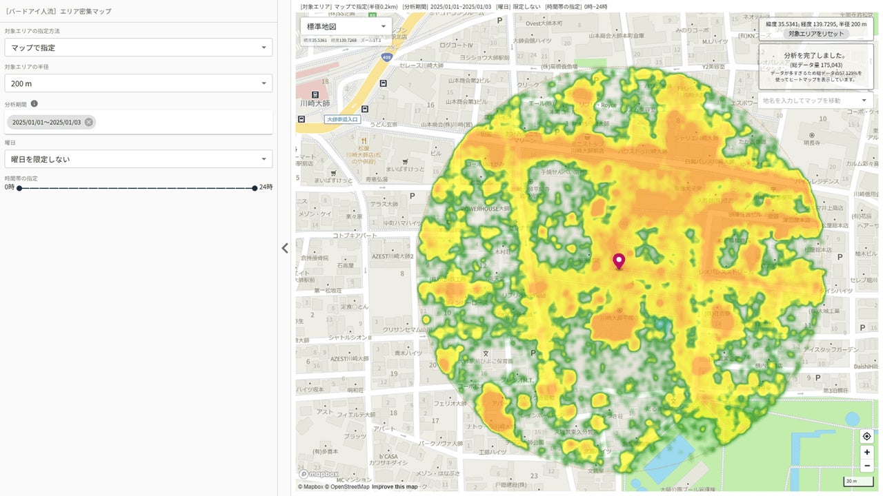 ・2024年1月1日(月)~ 2024年1月3日(水):エリア内の密集度分析