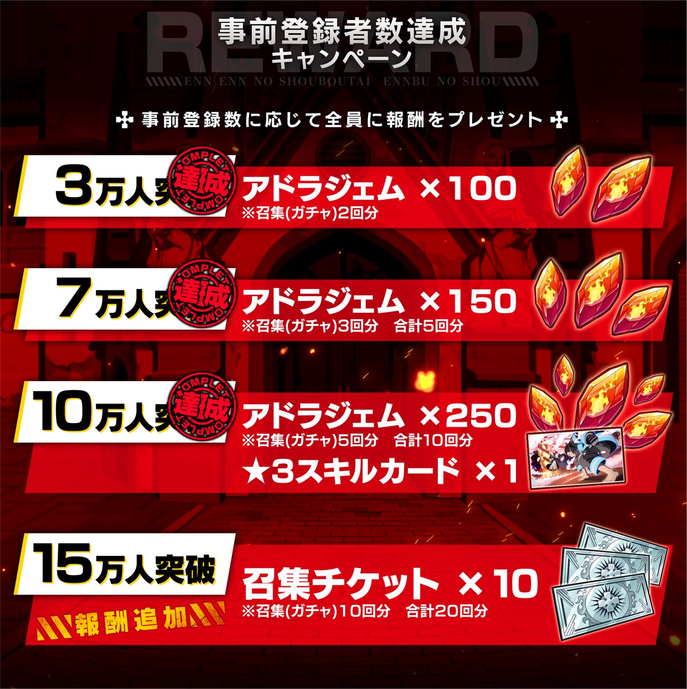 完全新作オリジナルゲーム『炎炎ノ消防隊 炎舞ノ章』事前登録数10万人突破!!15万人登録へ向けた追加報酬の情報も公開!
