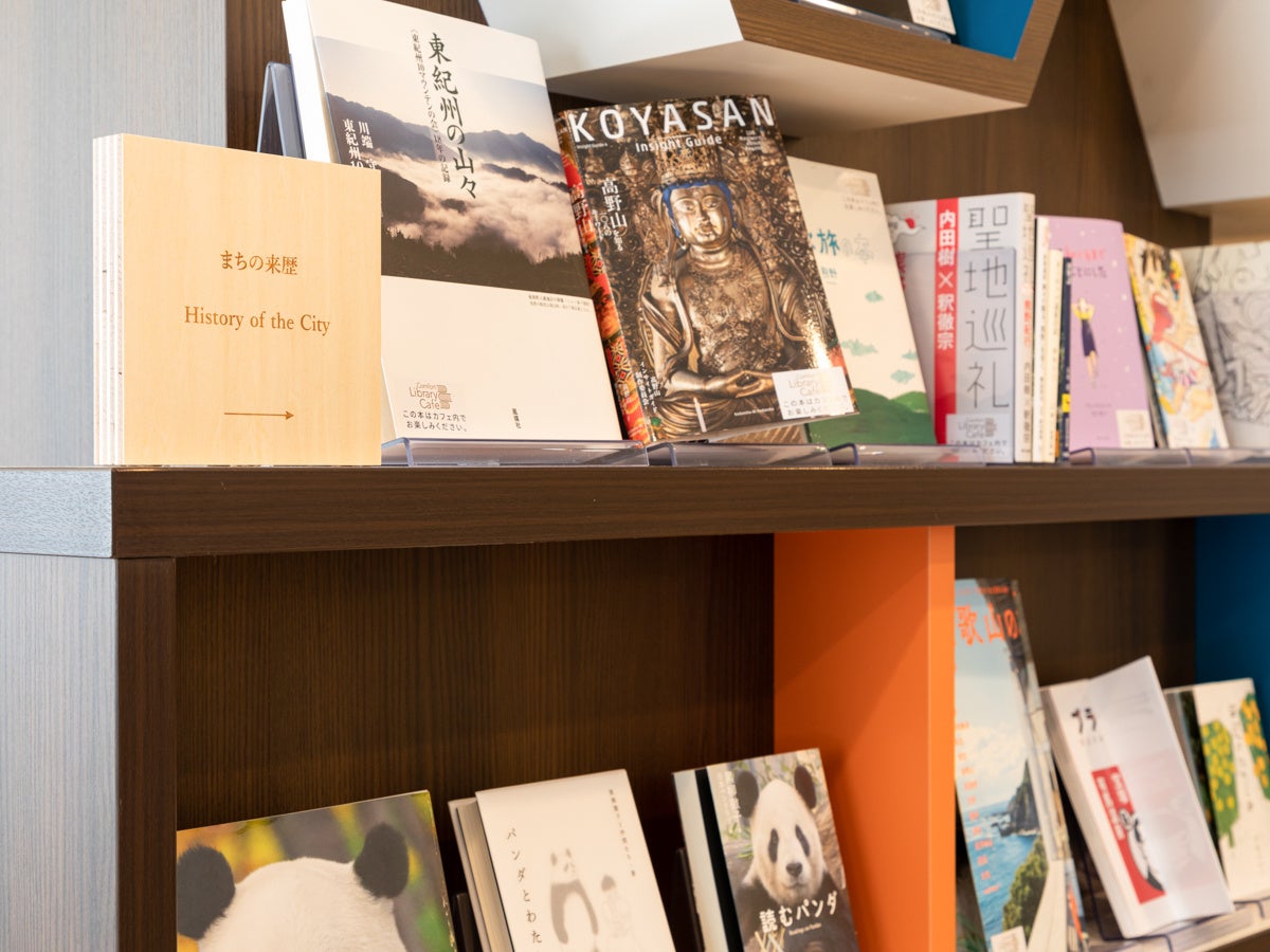 Comfort Library Cafeの本はブックディレクターの幅允孝氏に選書していただきました。和歌山の歴史や文化、旅にまつわる、コンフォートホテル和歌山のための本が100冊以上並びます。