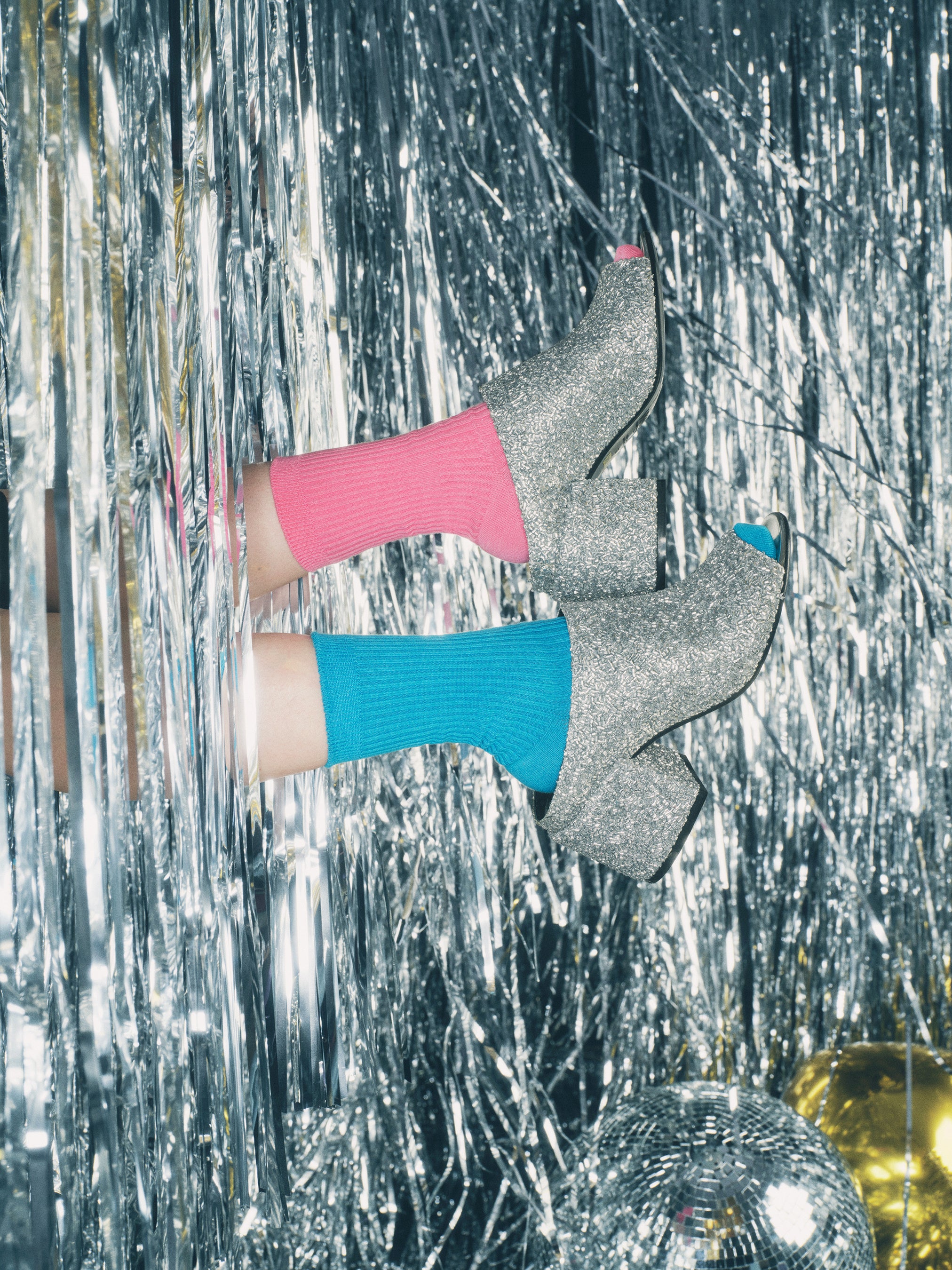 創業当時からのロングセラー商品“2×2リブソックス”を左右違う色で自由に楽しむ姿を、お祝いのパーティーをテーマにしたきらめく世界観で表現した、華やかなビジュアルとなっています。