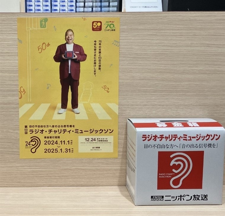 「ラジオ・チャリティ・ミュージックソン」は、「目の不自由な方たちが、安心して街を歩ける共生社会」を目指し、1975年から継続して行われている、「音の出る信号機」や目の不自由な方の社会参加につながるアイテムを増やすための基金を募るチャリティキャンペーンです。毎年12月24日正午からは、このチャリティキャンペーンのラジオ特別番組を24時間生放送。第50回のメインパーソナリティは、出川哲朗さんが務めました。